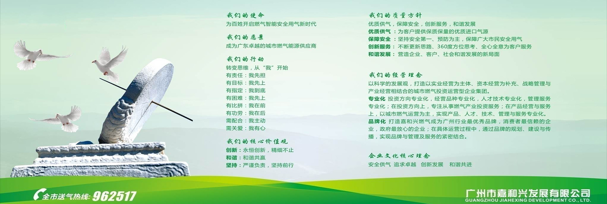 公司在廣州經(jīng)營(yíng)多年的液化氣的過程中,積累了大量的行業(yè)資源,積極配合政府管理及倡導(dǎo)行業(yè)溝通協(xié)調(diào)?,F(xiàn)在“嘉和興”已成為廣州液化氣市場(chǎng)的著名品牌。